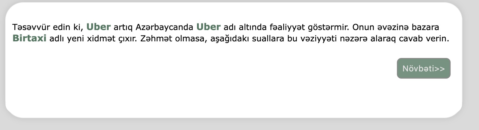 Bununla yanaşı, bazarda fəaliyyət göstərən Uber taksi xidmətinin gələcəkdə rebrendinq edilərək “Bir Taksi” adı altında fəaliyyətini davam etdirə biləcəyi də iddia olunur. Lakin bu məsələ ilə bağlı hələlik rəsmi təsdiq verilməyib.