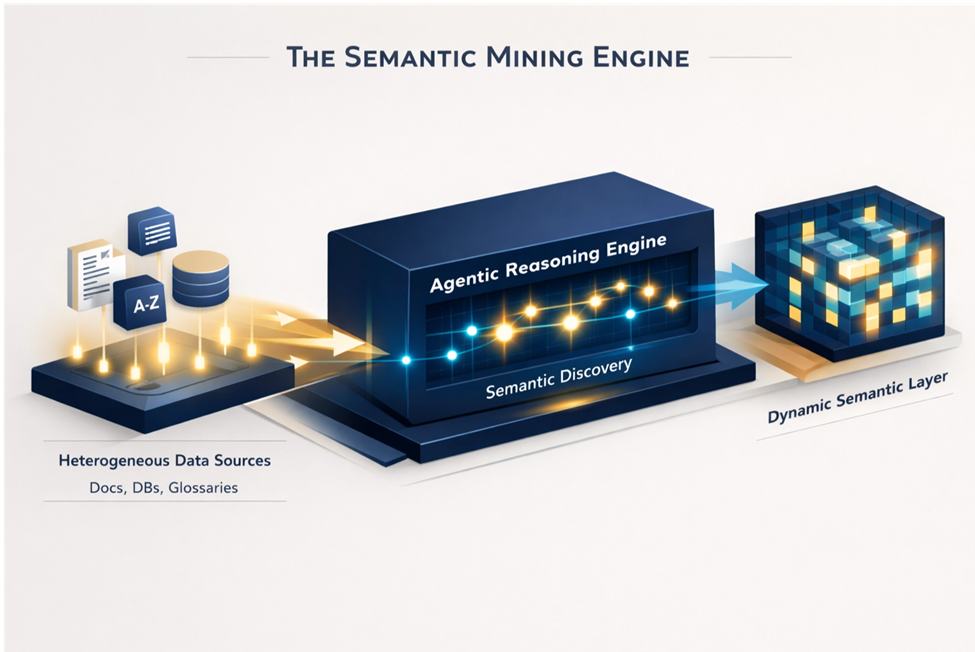 - Dinamik Semantik Qat Yaratmaq: Yüksək etibarlı təkliflərin avtomatik olaraq saxlandığı və insan-dövrədə təsdiqləmənin mürəkkəb hallar üçün dəqiqliyi təmin etdiyi canlı bir semantik qatı davamlı olaraq yeniləmək və saxlamaq.