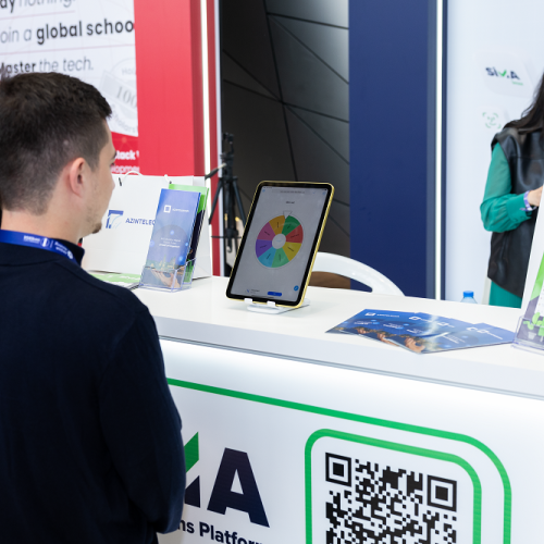 At the exhibition area, AzInTelecom is showcasing its interactive stand, where visitors can learn about the company’s innovative services and products. Guests are also invited to take part in a digital spin-the-wheel game and win various prizes.